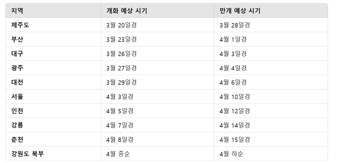 벚꽃 개화시기 2025년 총정리
